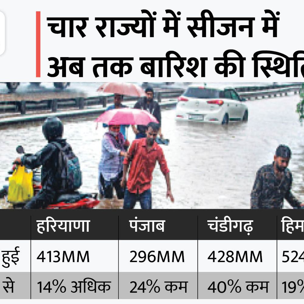 ब्रेक के बाद मानसून फिर एक्टिव:पंजाब-चंडीगढ़ व हिमाचल में अभी तक औसत से कम बारिश; हरियाणा में औसत से 14% अधिक बरसे बादल, भाखड़ा समेत दो बड़े बांधों में जलस्तर स्थिर